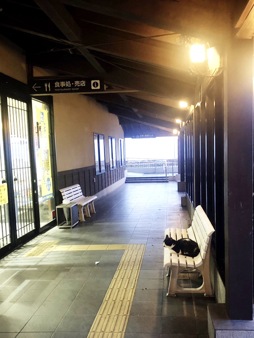 夜どおし走って朝方に休憩しようと道の駅に立ち寄ると、お店の前で開店を待つお客さまがベンチにおられました。