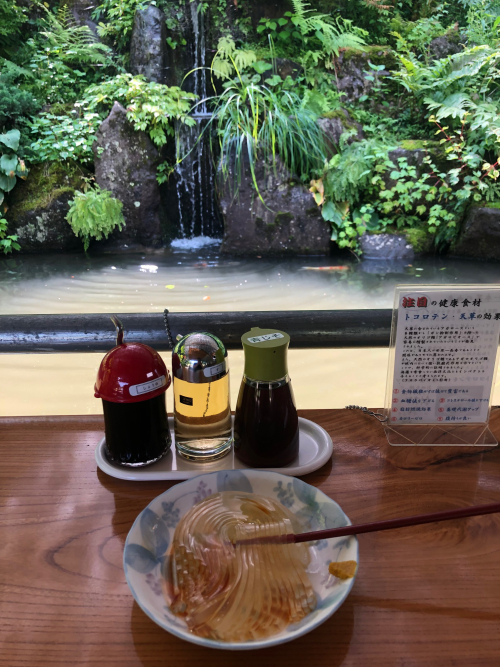 …ということで、秘密のケンミンSHOWで絶賛されていた新潟県にある「日本一うまいトコロテン」という名のお店へ行ってきました。 こちらのお店では弘法大師が由来とかでトコロテンを箸一本で食べるのですが、いつツルンと箸からすべり落ちないかドキドキします。