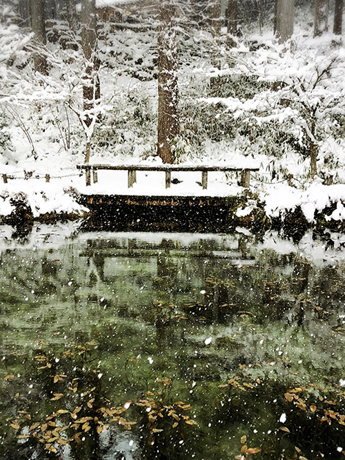 岐阜県へ行った帰り、通称「モネの池」と呼ばれる有名な池へ行ってきました。 睡蓮の花が咲く時期でもなく、鯉も泳いでなかったですが、こういう雪景色もまた綺麗でした。