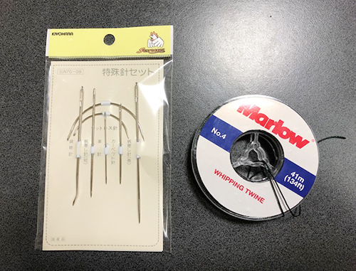 糸はこだわってMarlowの”Whipping Twine”というヨットのセール補修用を選びました。一般的な麻糸より耐久性に優れていて紫外線にも強いらしいです。