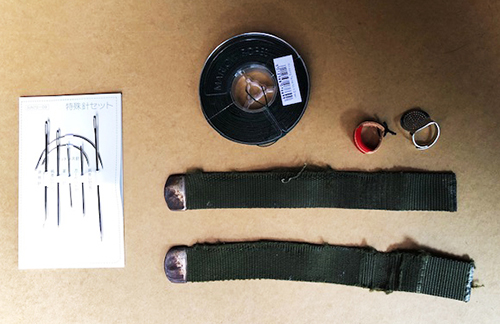 用意するのは針と糸と指ぬき(必須です)とベルト(メインです)